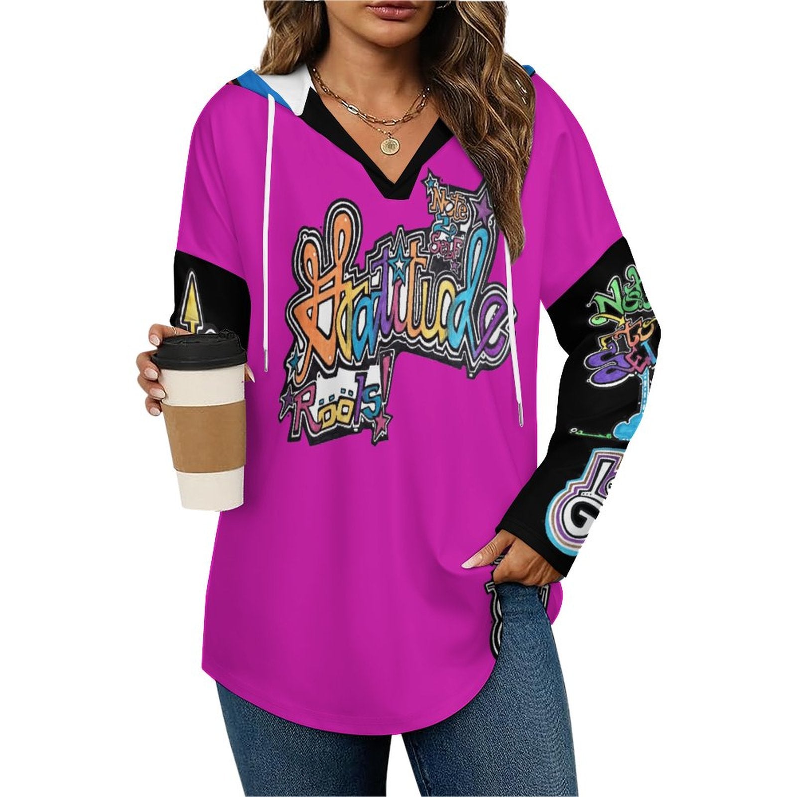 - Stylish & Versatile: Boasting a loose fit, this Women's V Neck Long Sleeve Hoodie flatters all body types effortlessly.