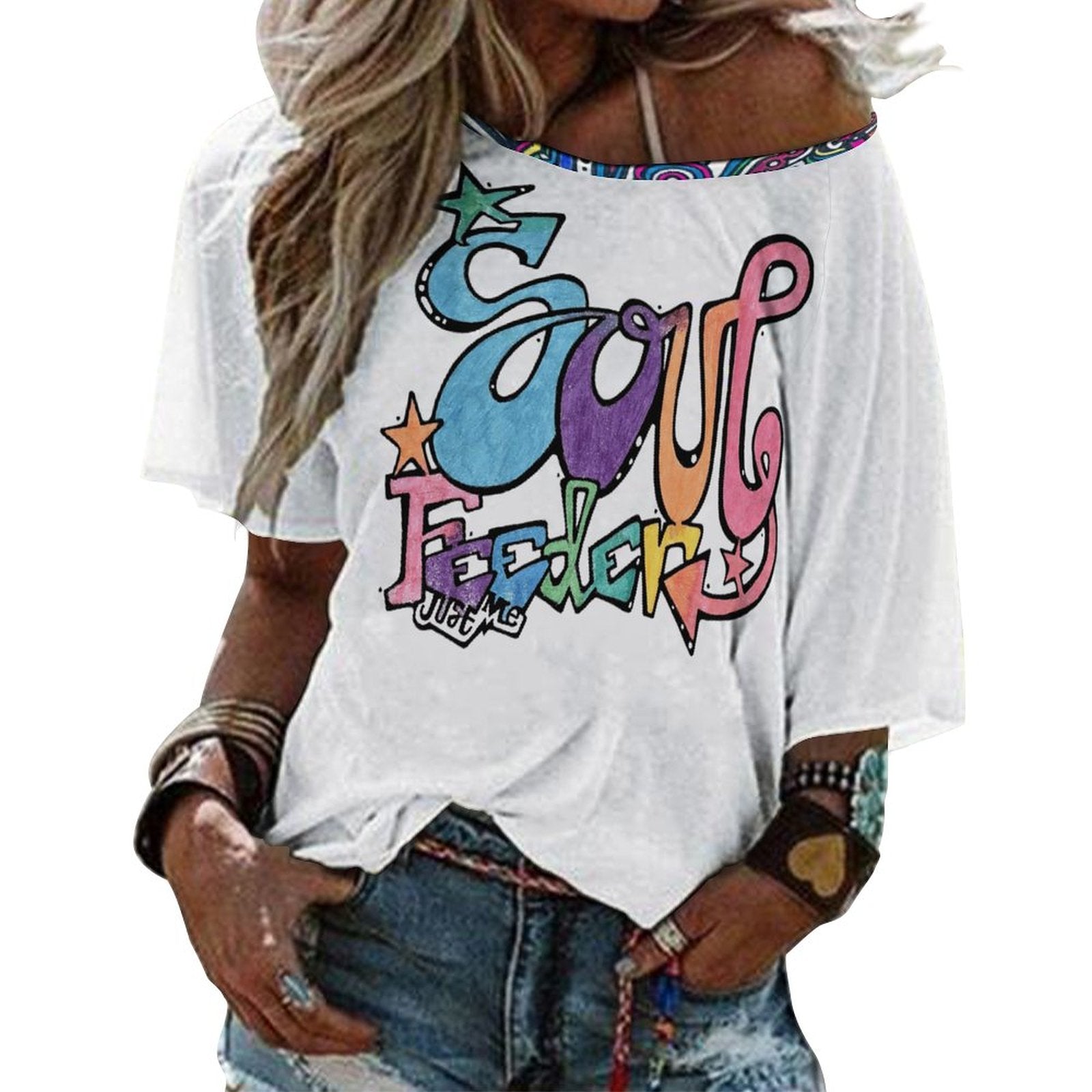 Soul Feeder Women’s Off the Shoulder Half-Sleeve T-shirt